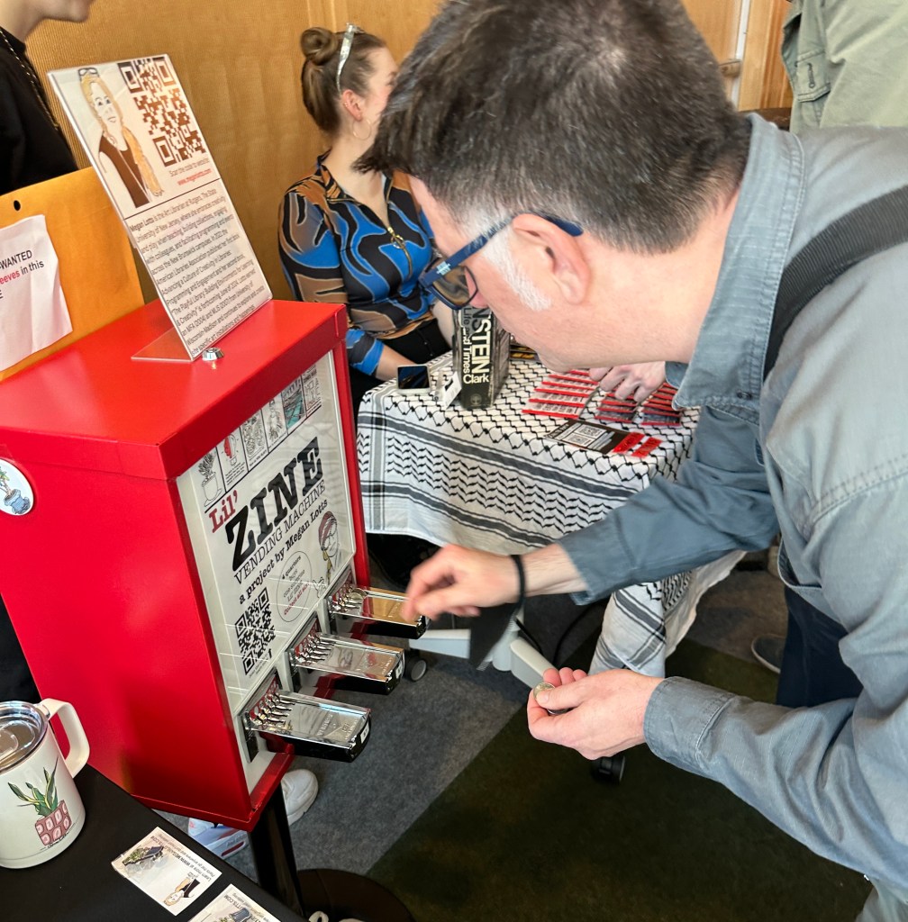 The Lil Zine Venzine Machine is a project which involves the distribution of tiny zines via a vending machine. For 4 quarters an individual may purchase a surprise zine created by artist Megan Lotts. This work will debut at the Princeton Zinefest on March 16, 2024 at the Princeton Public Library in Princeton, New Jersey.
