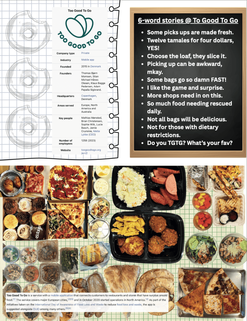 To Good To Go is an organization and digital application which helps you rescue food that may be throw out by an establishment at the end of the day. This app is not for everyone. Partly because one doesn’t know what you will get and that can be trying if you have dietary restrictions, like I do. Yet often I break my gluten fast, pop a glutenease, and pizza here I come. Learn more about the app by reading my zine or download the app and rescue a bag yourself.
