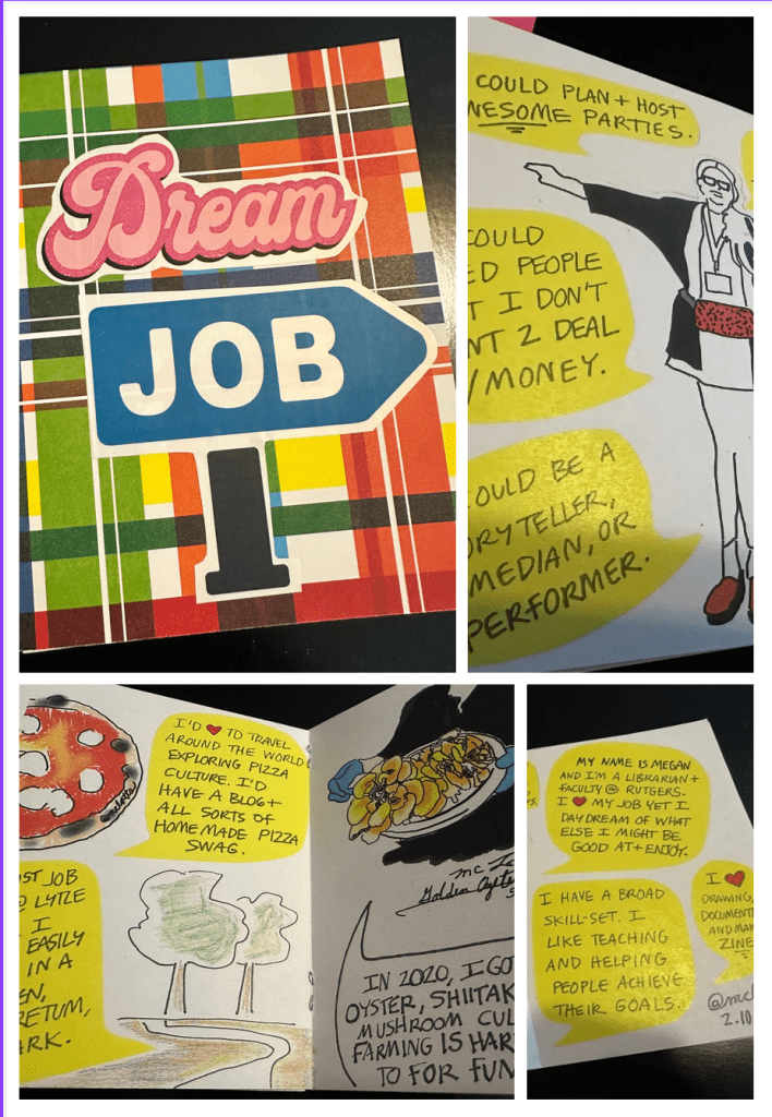 Artwork, Librarianship Dream Job Zine Posted by Megan Lotts on February 16, 2026 My name is Megan and I’m an Art Librarian and Faculty at Rutgers University Libraries. I love my job yest I daydream all the time about what else I might do for a living. But also I think about what I might be good and or enjoy. Share this: Share on X (Opens in new window) X Share on Facebook (Opens in new window) Facebook Like Loading... Related