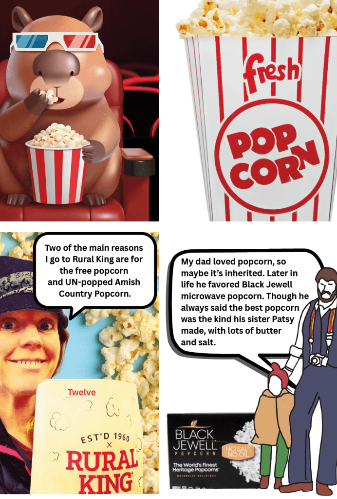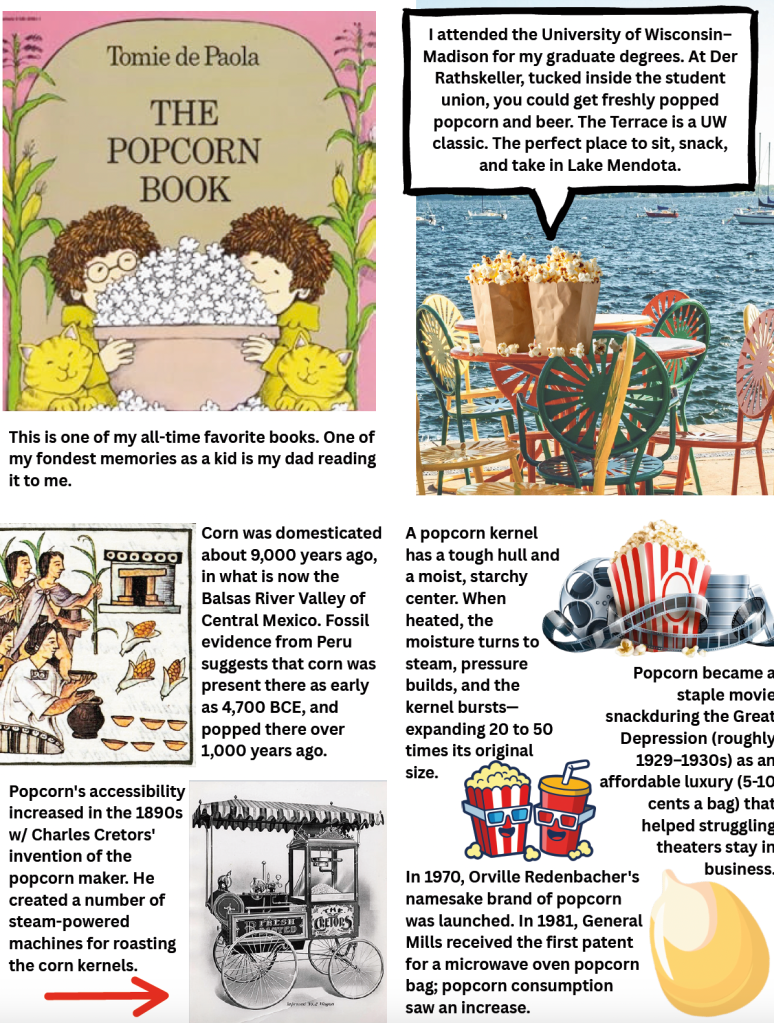 My name is Megan, and I love popcorn—it’s probably my favorite snack. I usually prefer it savory, but once in a while I make wicked amazing caramel corn. It’s mostly butter and sugar, so moderation is wise… though the buttery crunch makes that hard. I hope you enjoy this zine and learn a little about popcorn, its history, and my relationship with this sweet & salty snack.